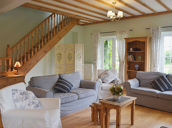 Foxcover Cottage is a lovely, cosy family cottage. The kitchen/dining area is open plan, with a large inviting fireplace, featuring a wood buring stove. Beamed
