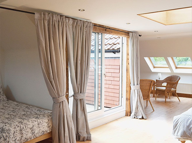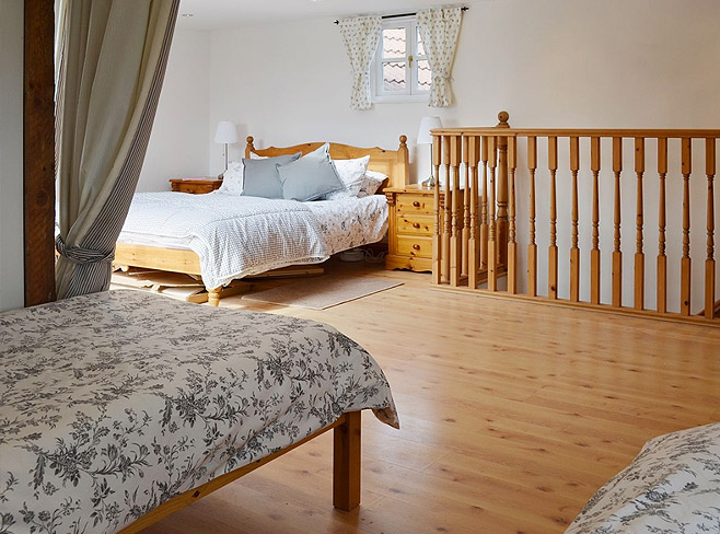 double bedroom with 6ft bed (can form two single beds) and balustrading