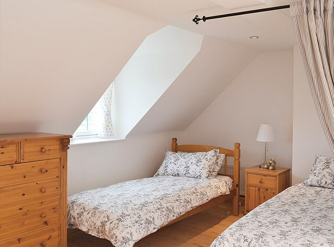 over whirlpool bath. First floor: Twin-bedded room. Enclosed mezzanine